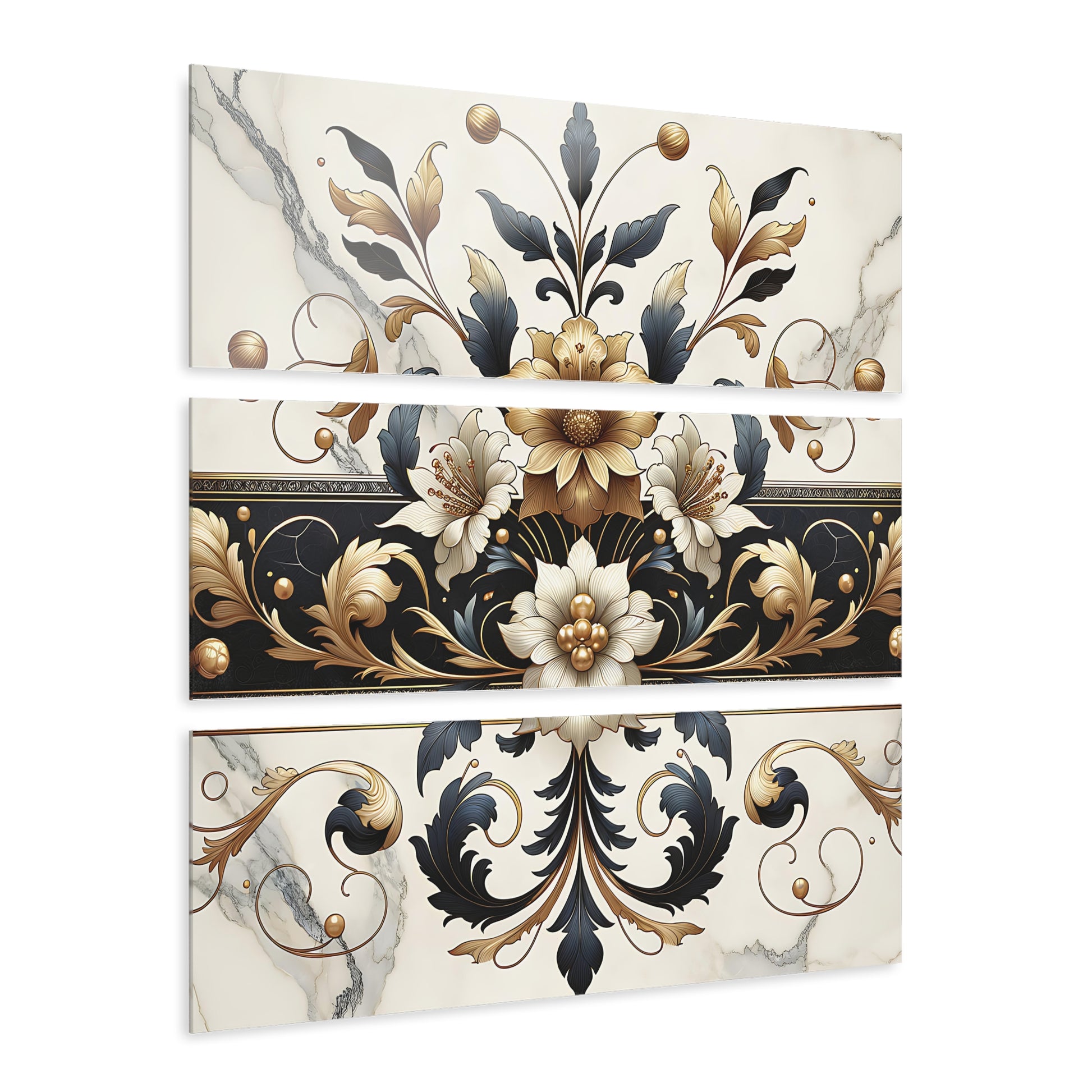 Gilded Reverie – One-of-a-Kind Baroque Floral Wall Art in Black, Gold & Marble | Collector’s Edition