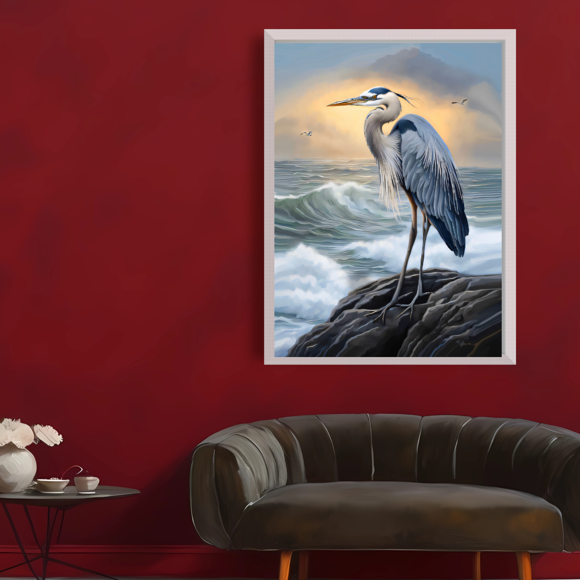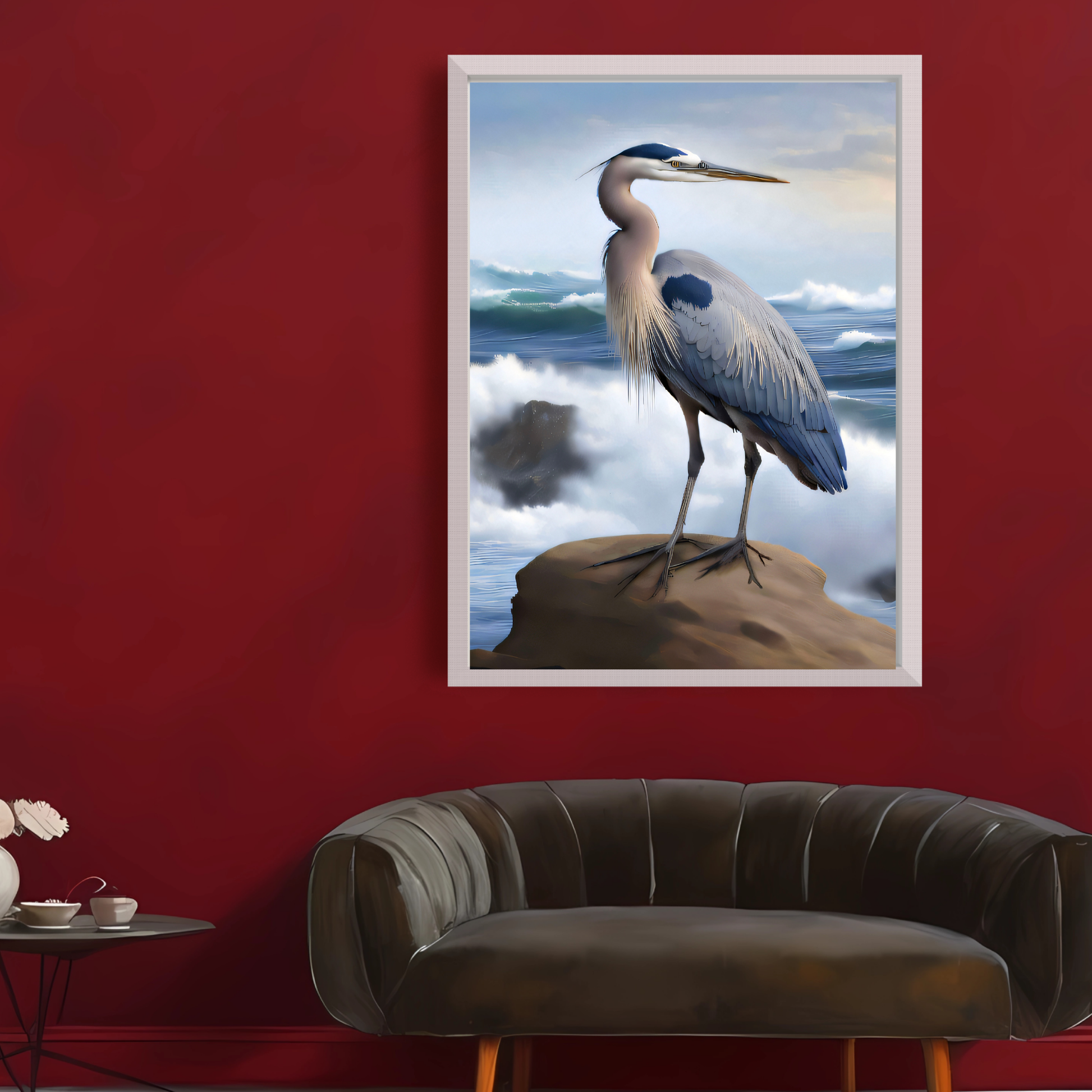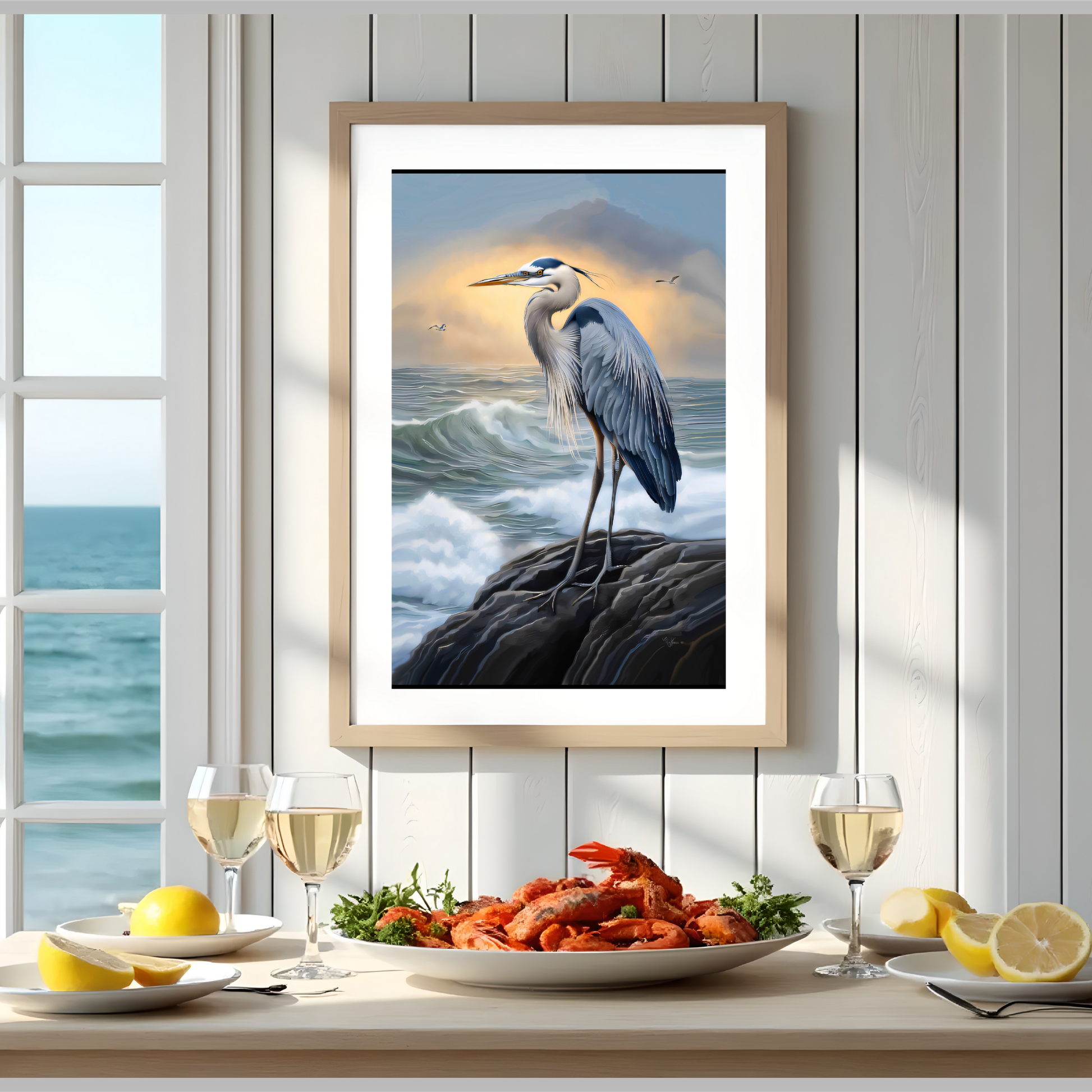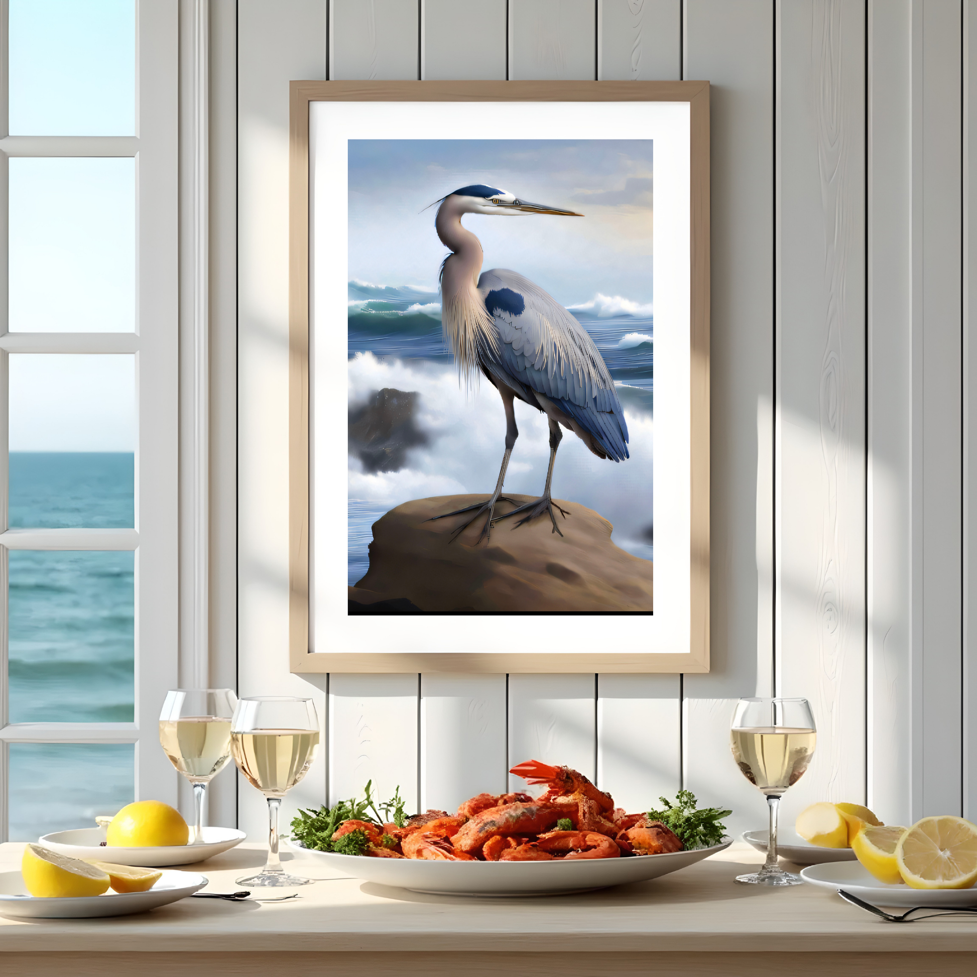 Blue Heron Coastal Wall Art – Printable Ocean Decor
