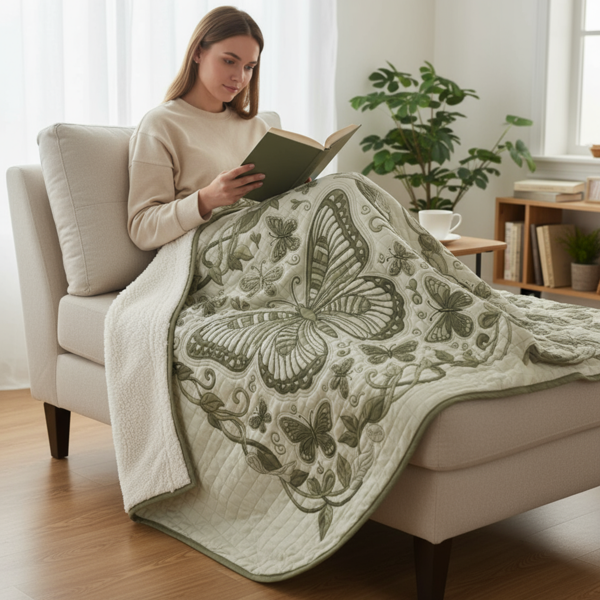 Butterfly Garden Fleece Sherpa Blanket – Cozy Nature-Inspired Throw