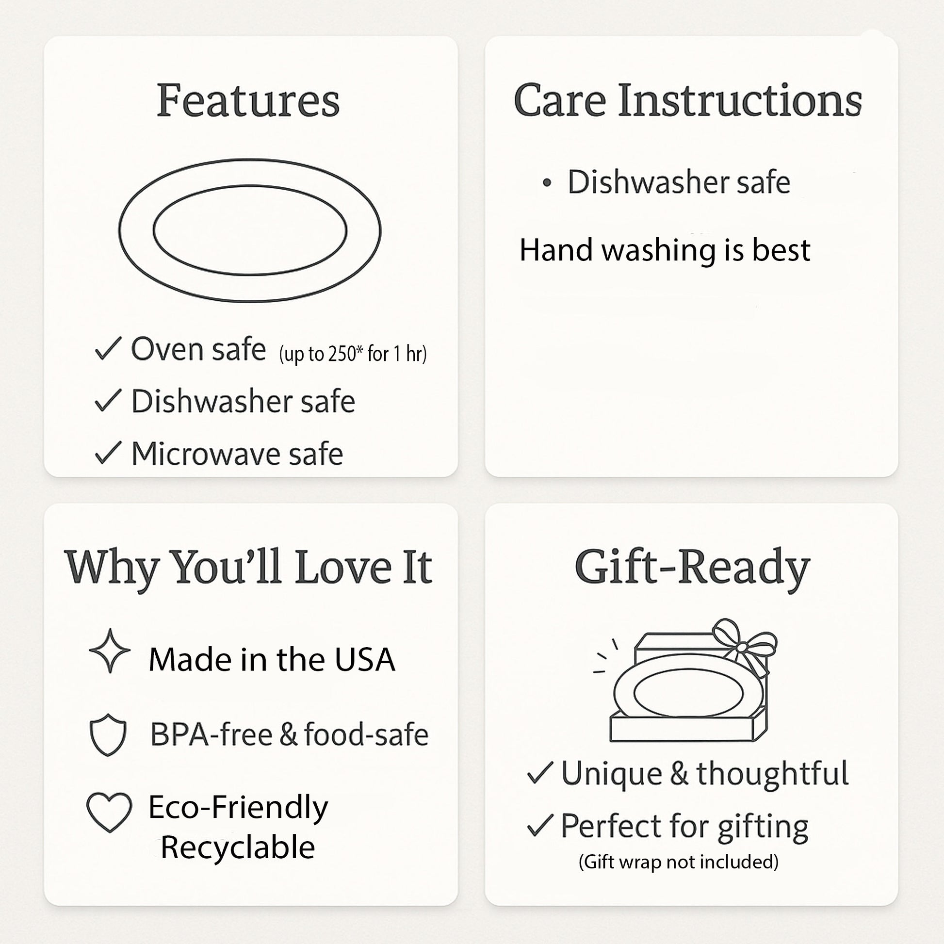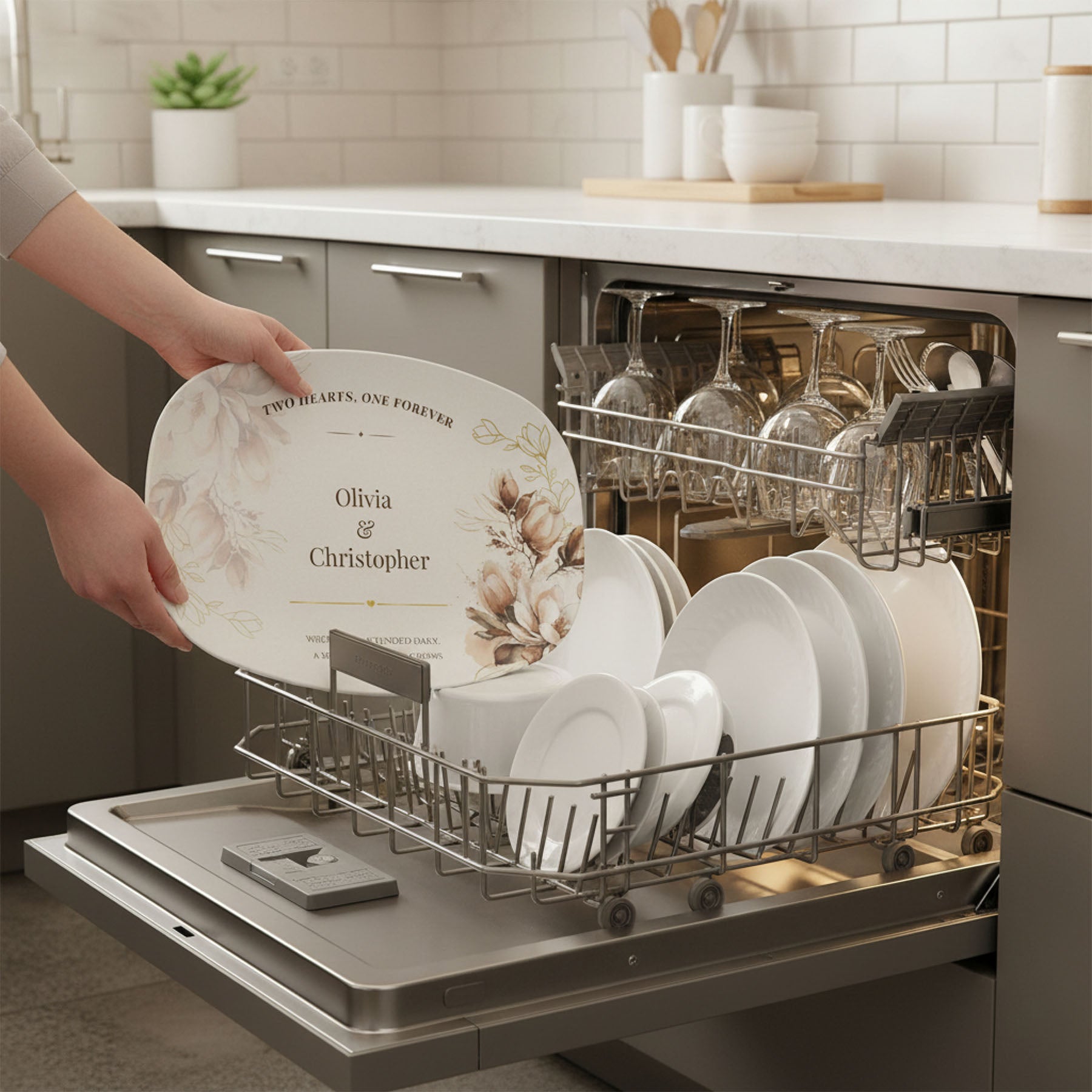 Each platter is made in the U.S.A. with durable, dishwasher-safe materials and a satin finish that showcases the artwork beautifully. Thoughtful, romantic, and designed to last — it’s the perfect way to honor a couple’s journey and the vows they share.