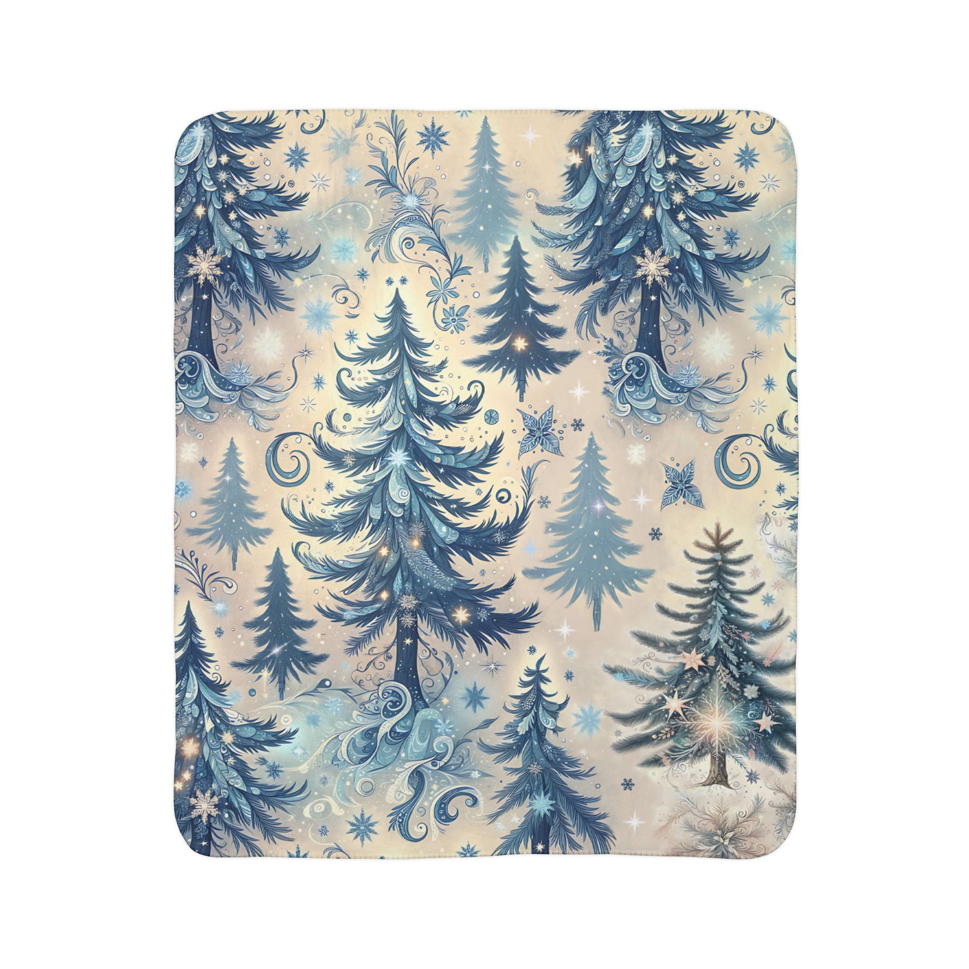 Frosted Woodland Christmas Fleece Sherpa Blanket – Cozy 50x60” Winter Trees Design – Beige or Grey Backing
