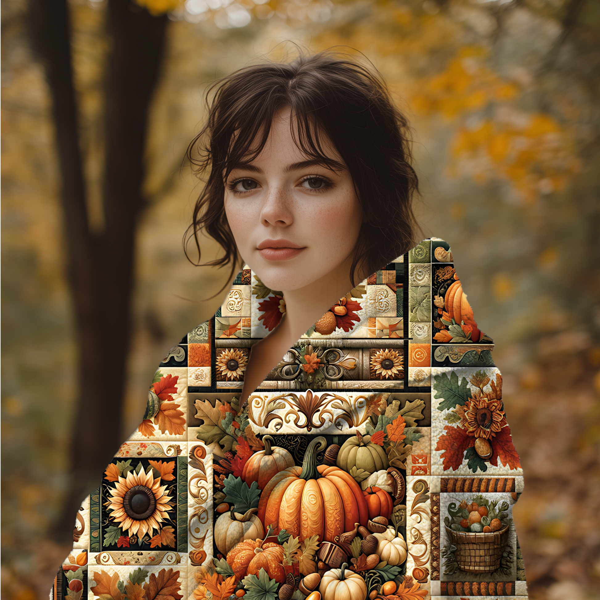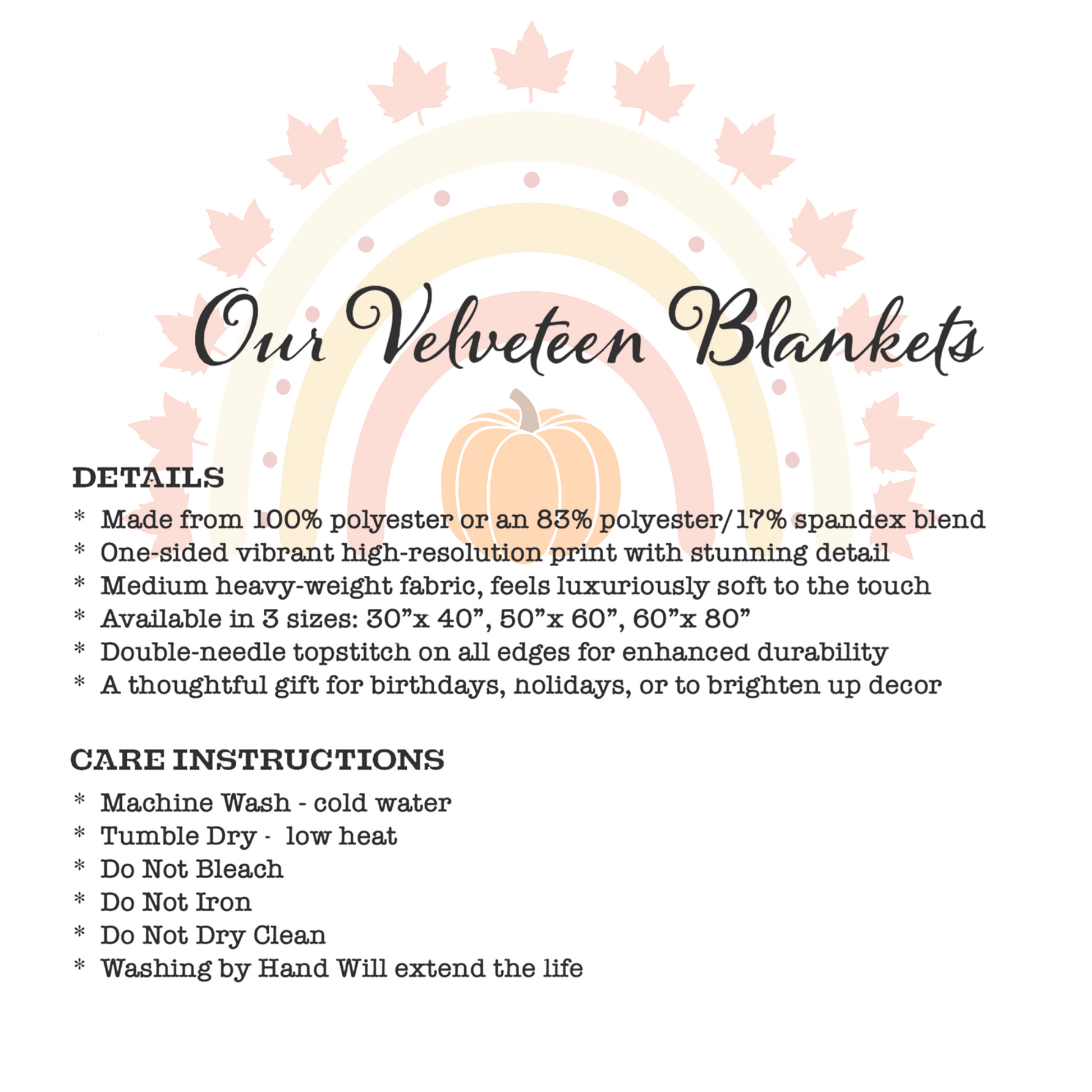 This cozy velveteen blanket is designed to look like a handmade heirloom quilt, rich with pumpkins, sunflowers, and fall leaves. It brings warmth and rustic charm to your home without the weight of a traditional quilt. Whether you’re decorating for the season, cozying up for movie night, or gifting someone you love, this harvest-inspired throw is full of nostalgic charm and autumn magic.