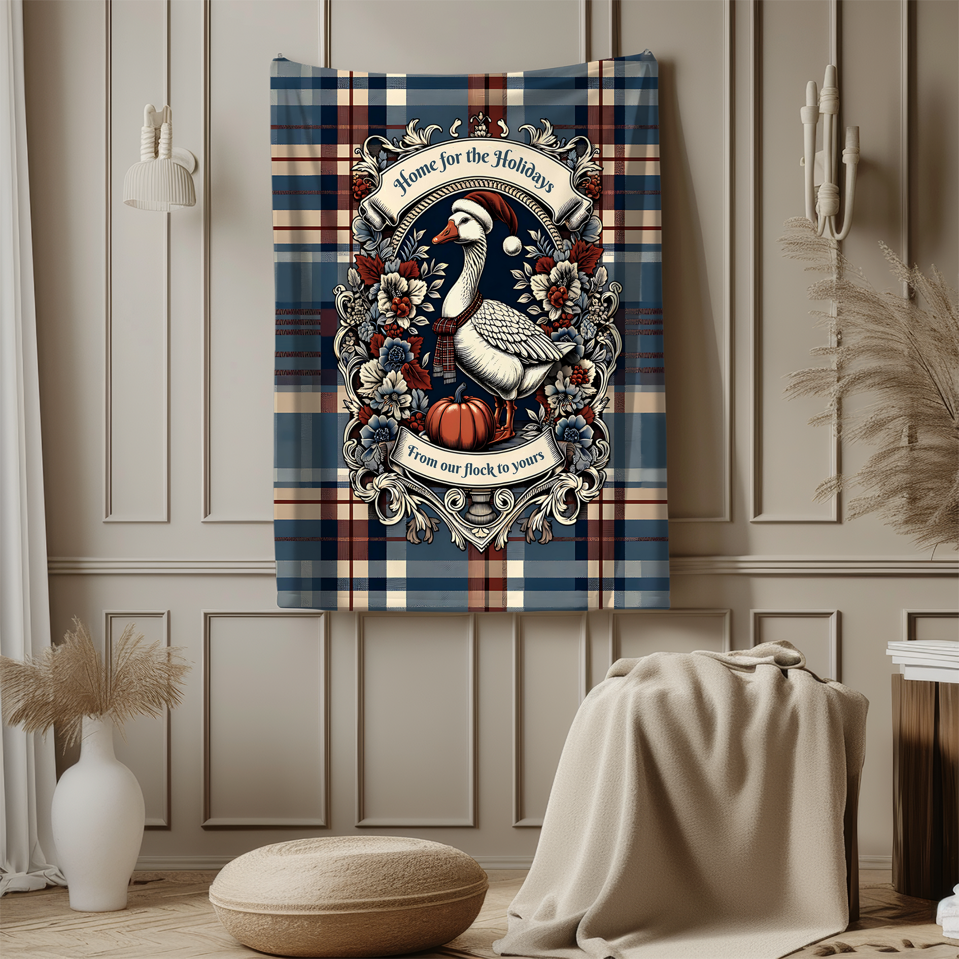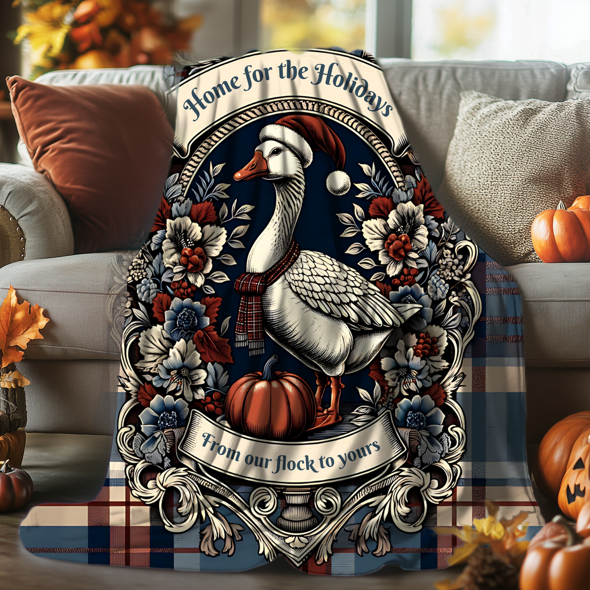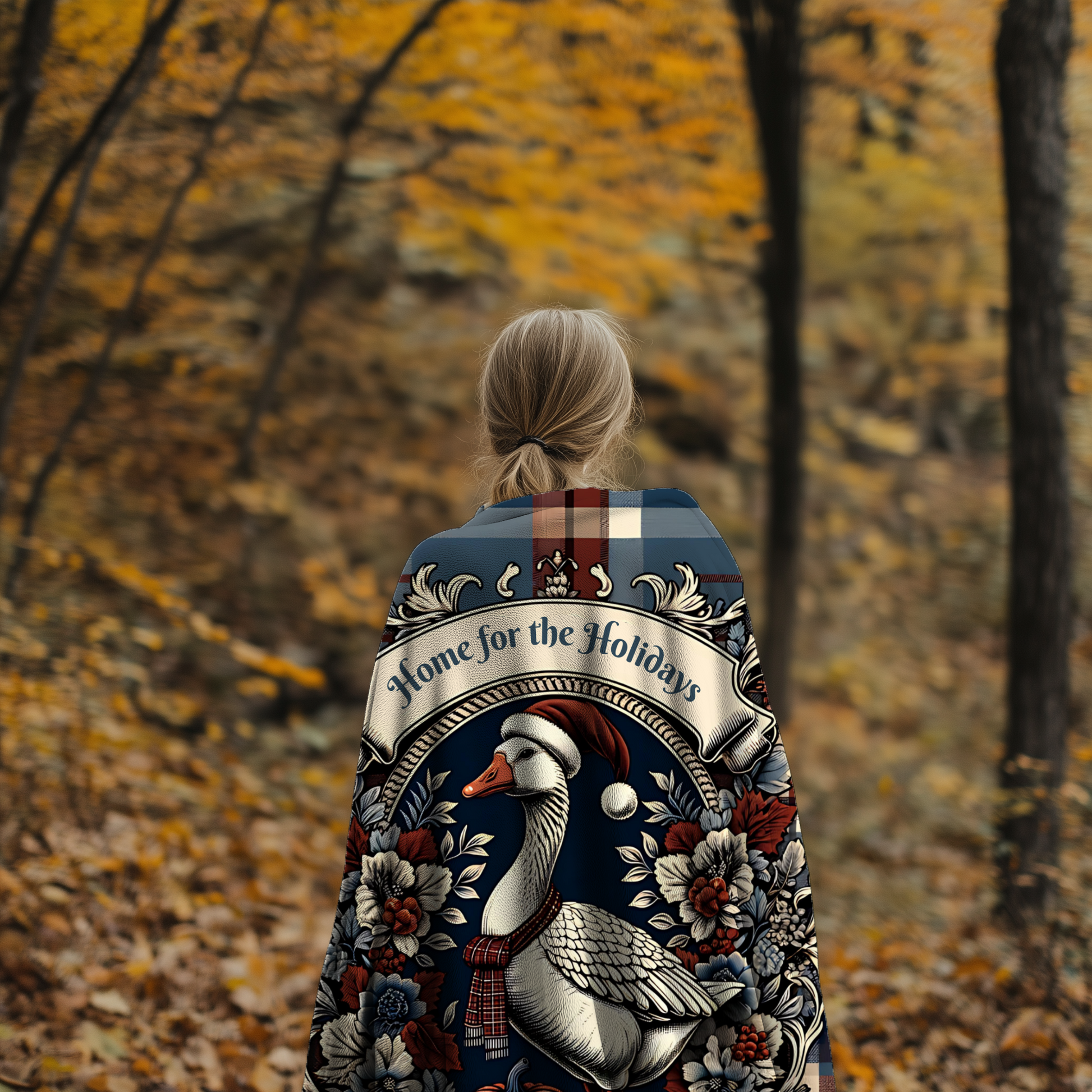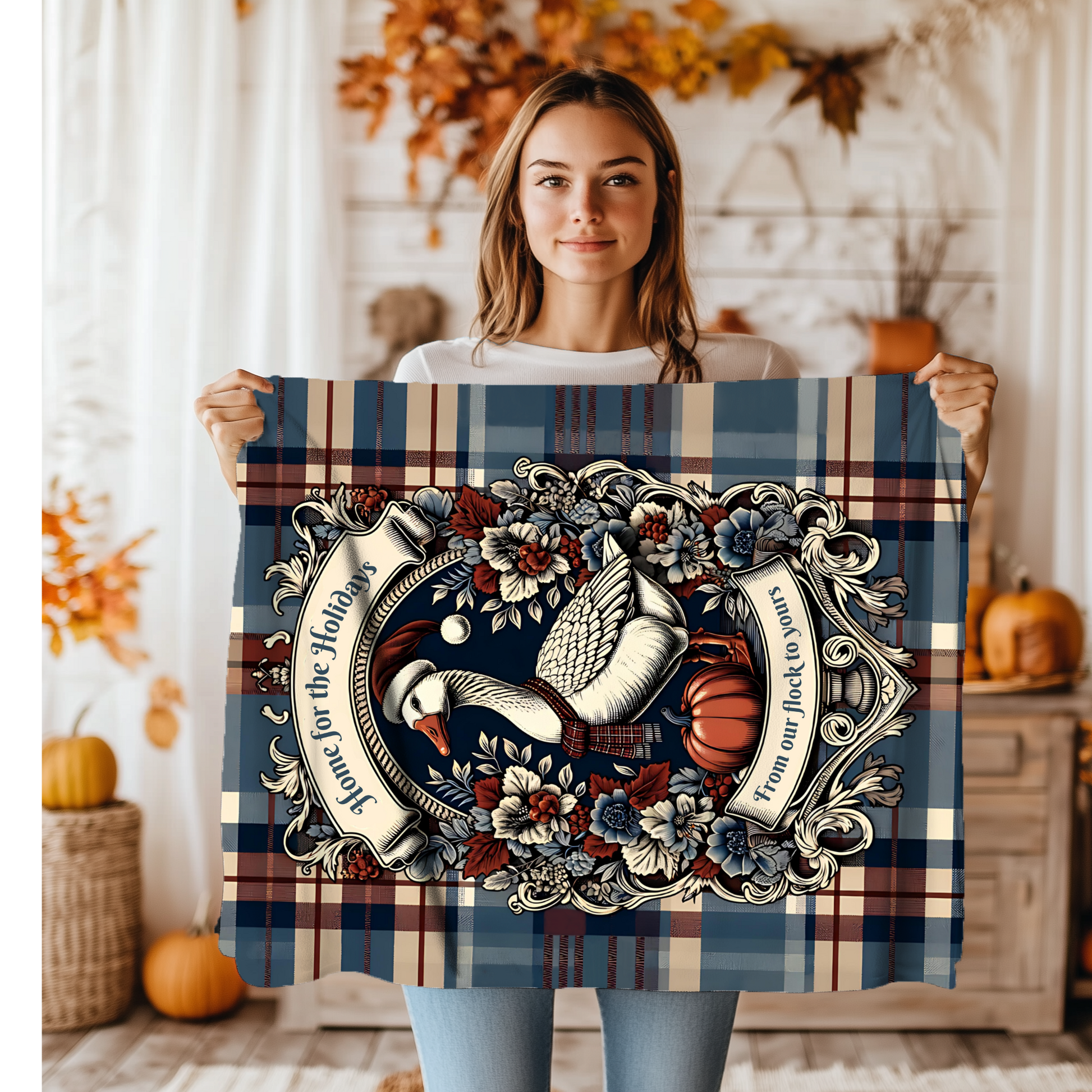 Home for the Holidays Goose Blanket - “From Our Flock to Yours” - Cozy Farmhouse Christmas Throw