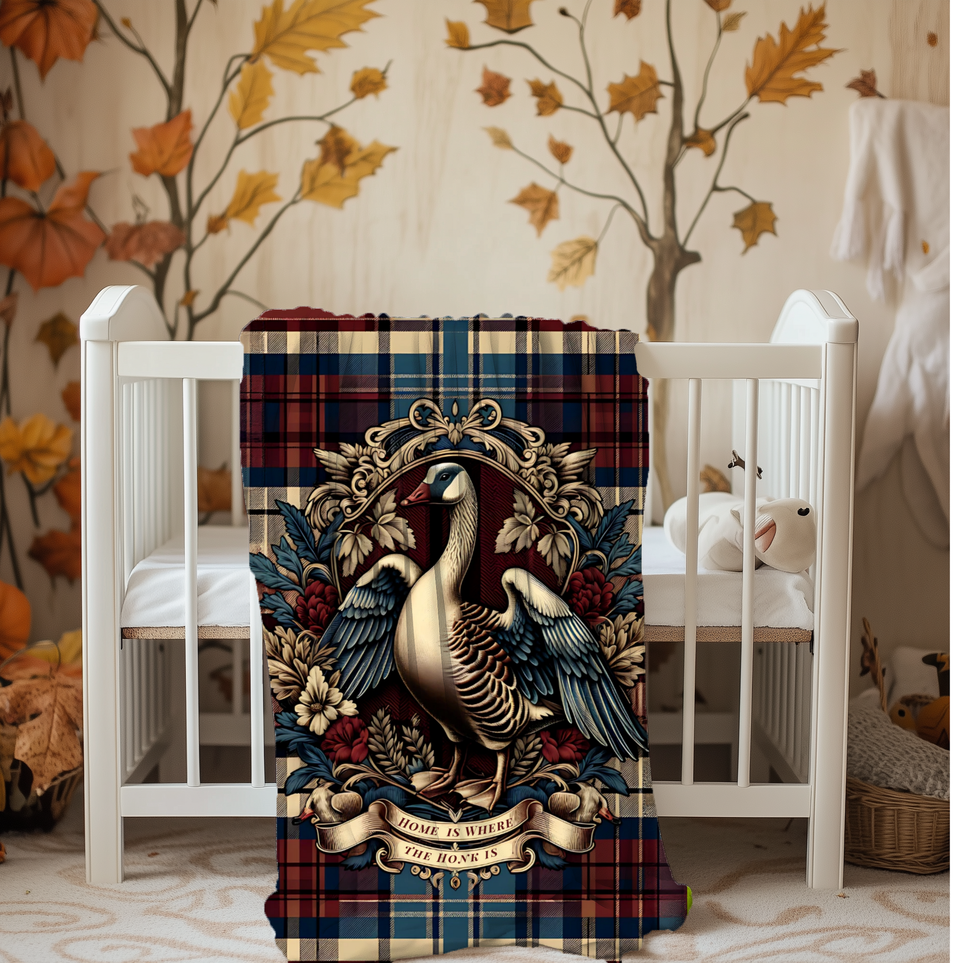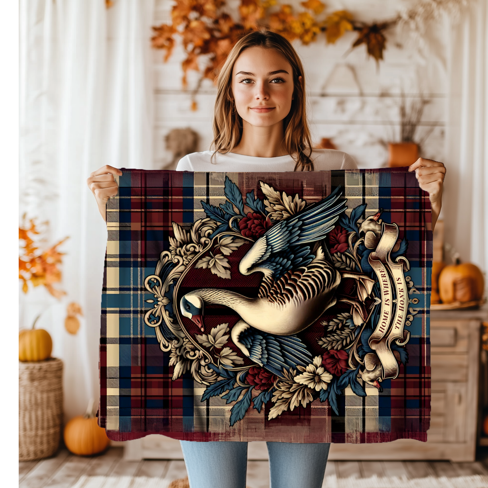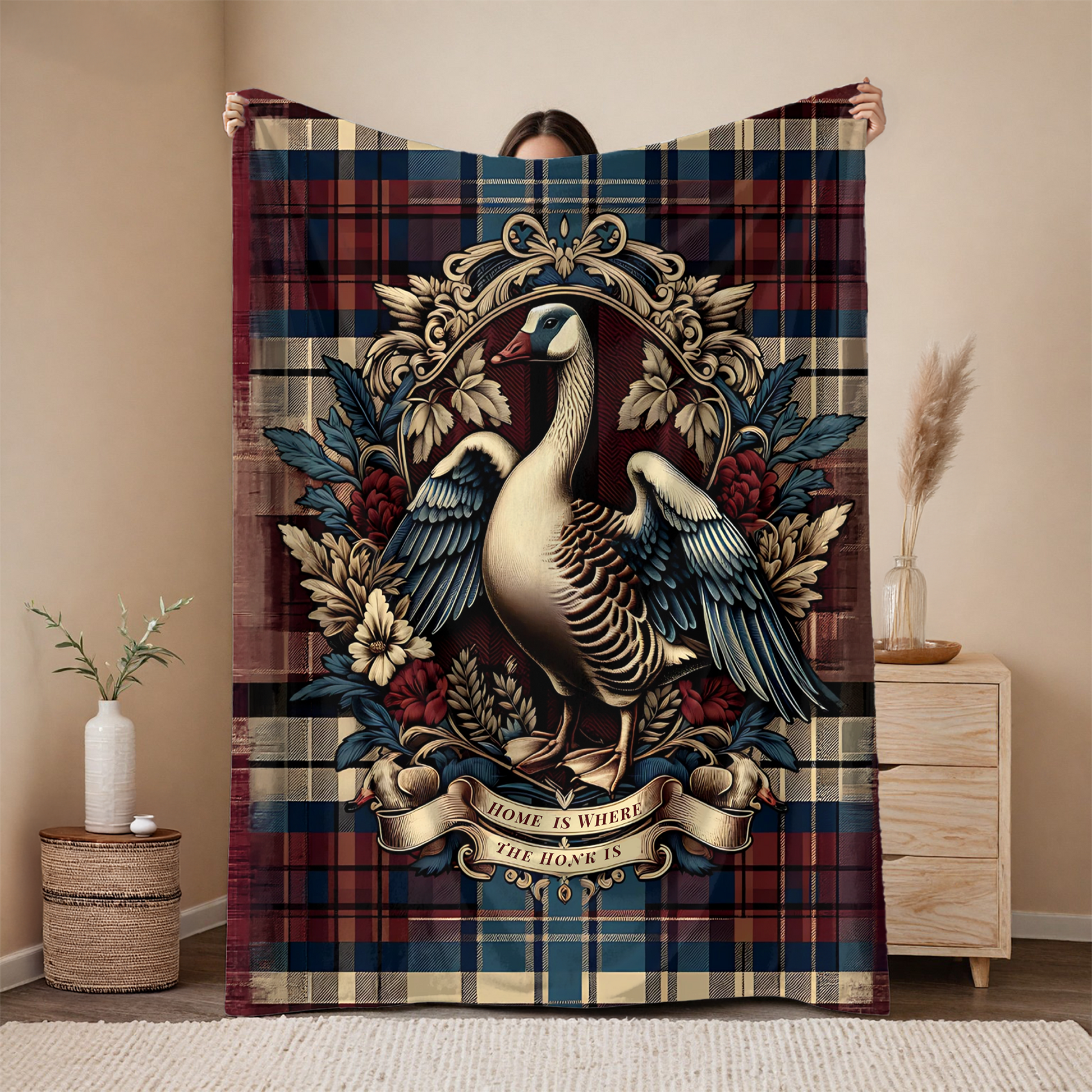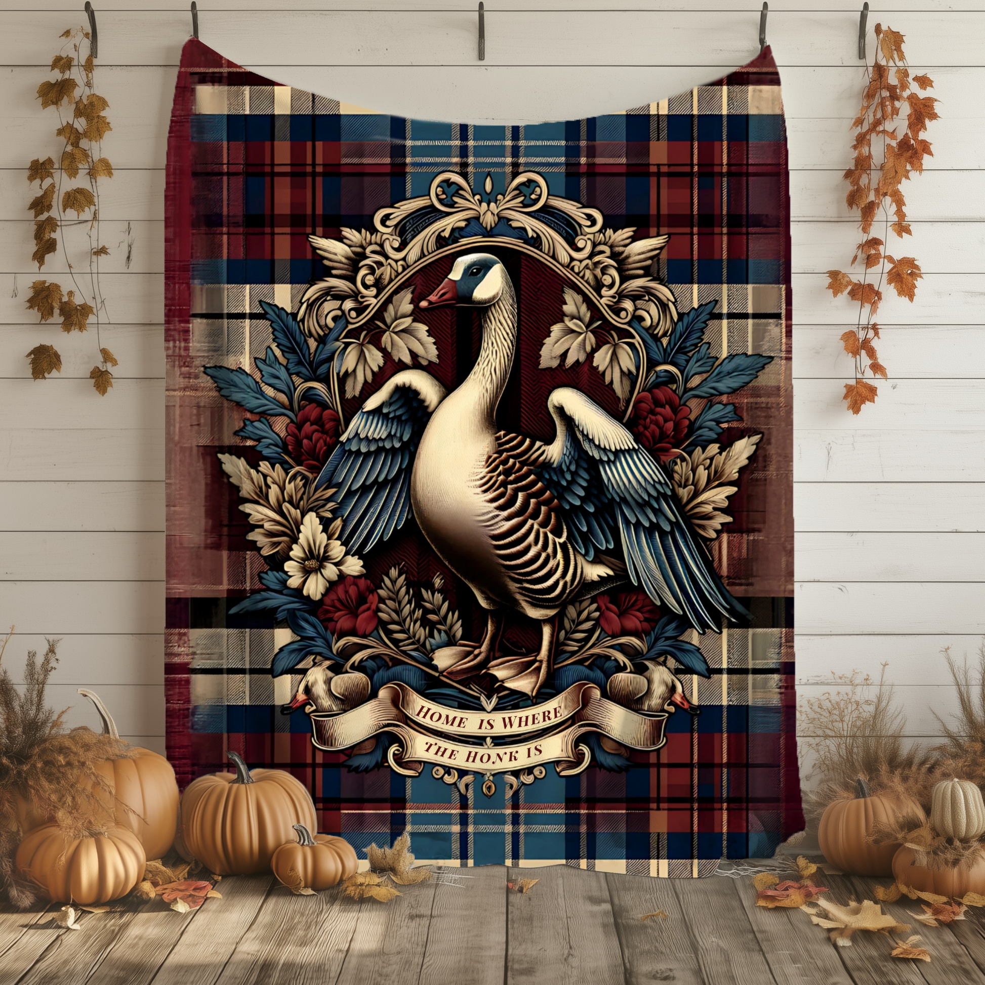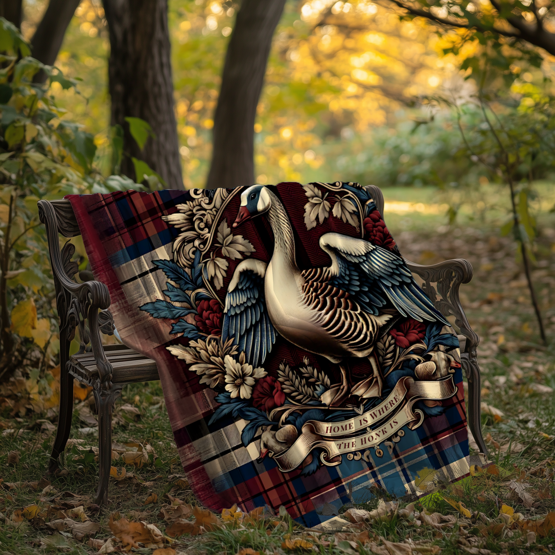 Home is Where the Honk Is Blanket – Rustic Plaid Farmhouse Throw with Vintage Goose Design