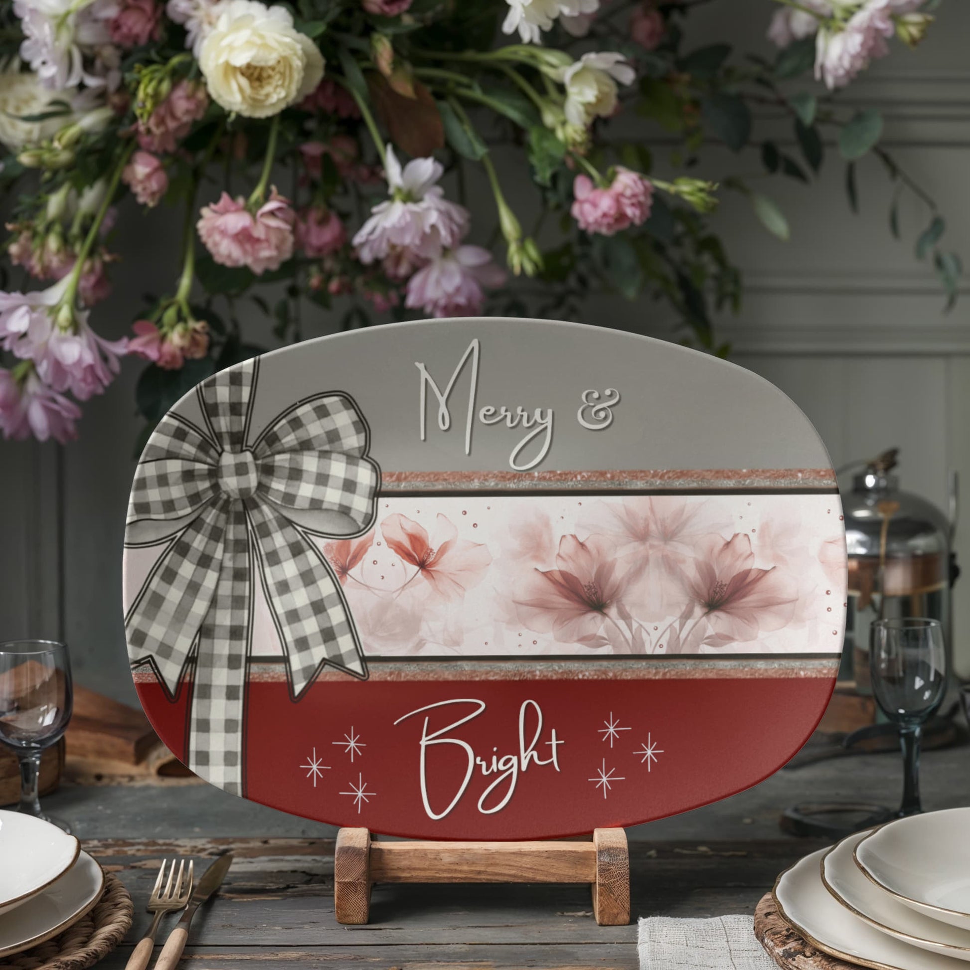 Merry & Bright Floral Christmas Platter • 10x14 Holiday Serving Tray • Oven Safe • Dishwasher Safe • Hostess Gift • Family Dinnerware