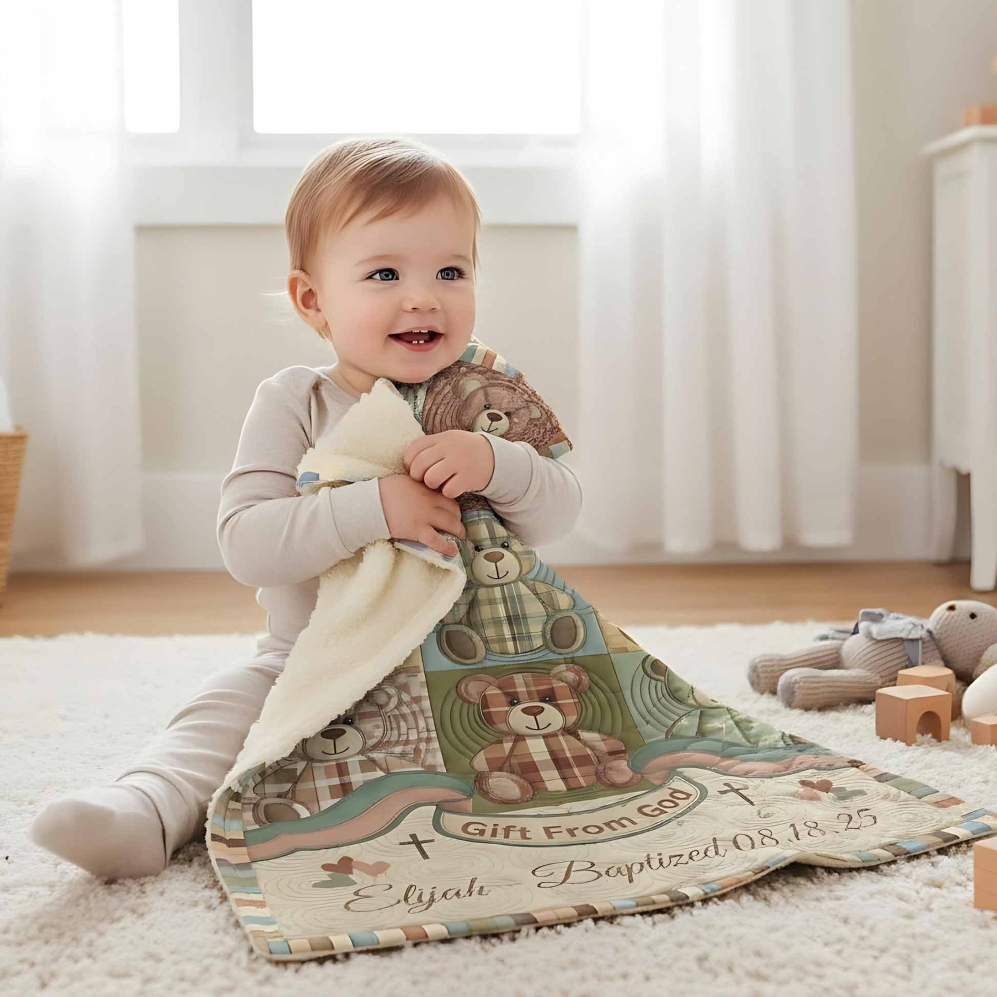 🌿 Gift From God – Personalized Baby Baptism Blanket (30x40)