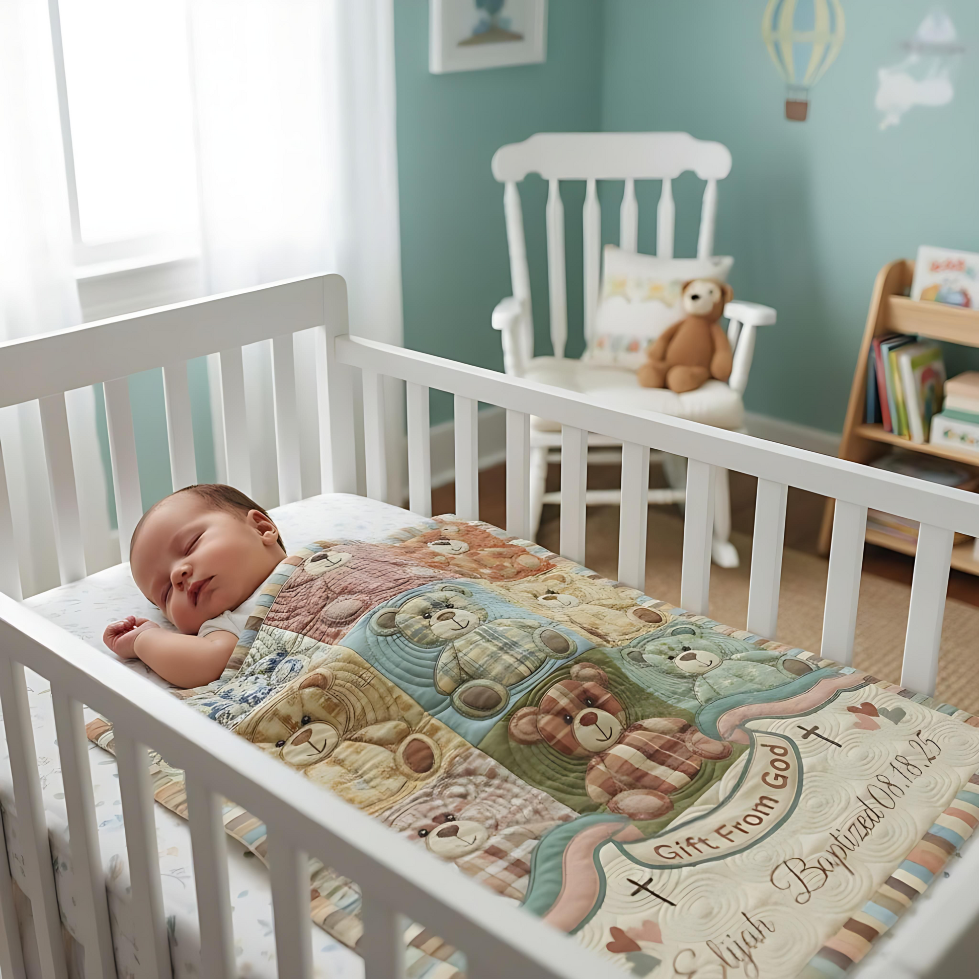 this blanket is ideal for baptisms, dedications, or baby blessings. It’s large enough for cozy snuggles yet small enough to display in a