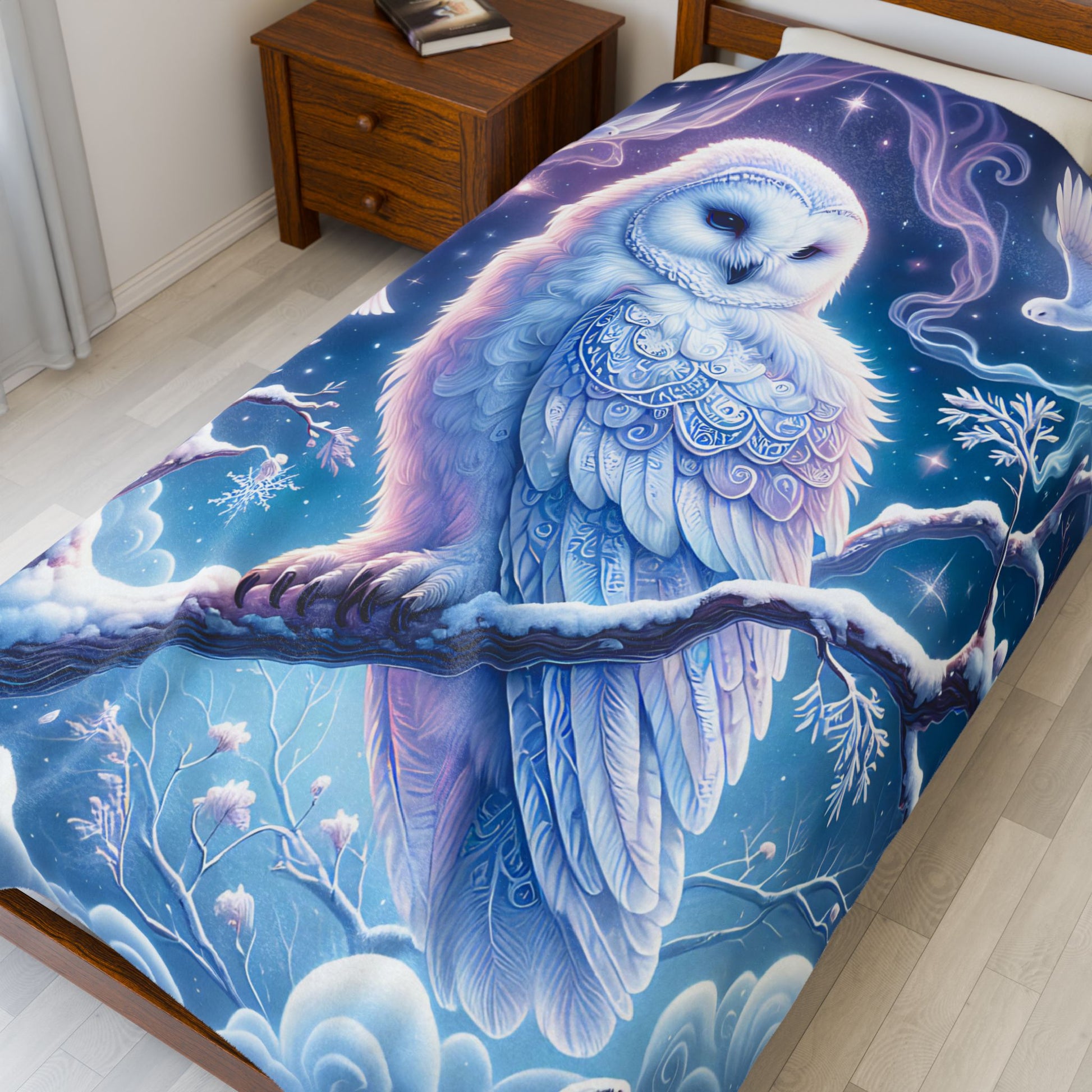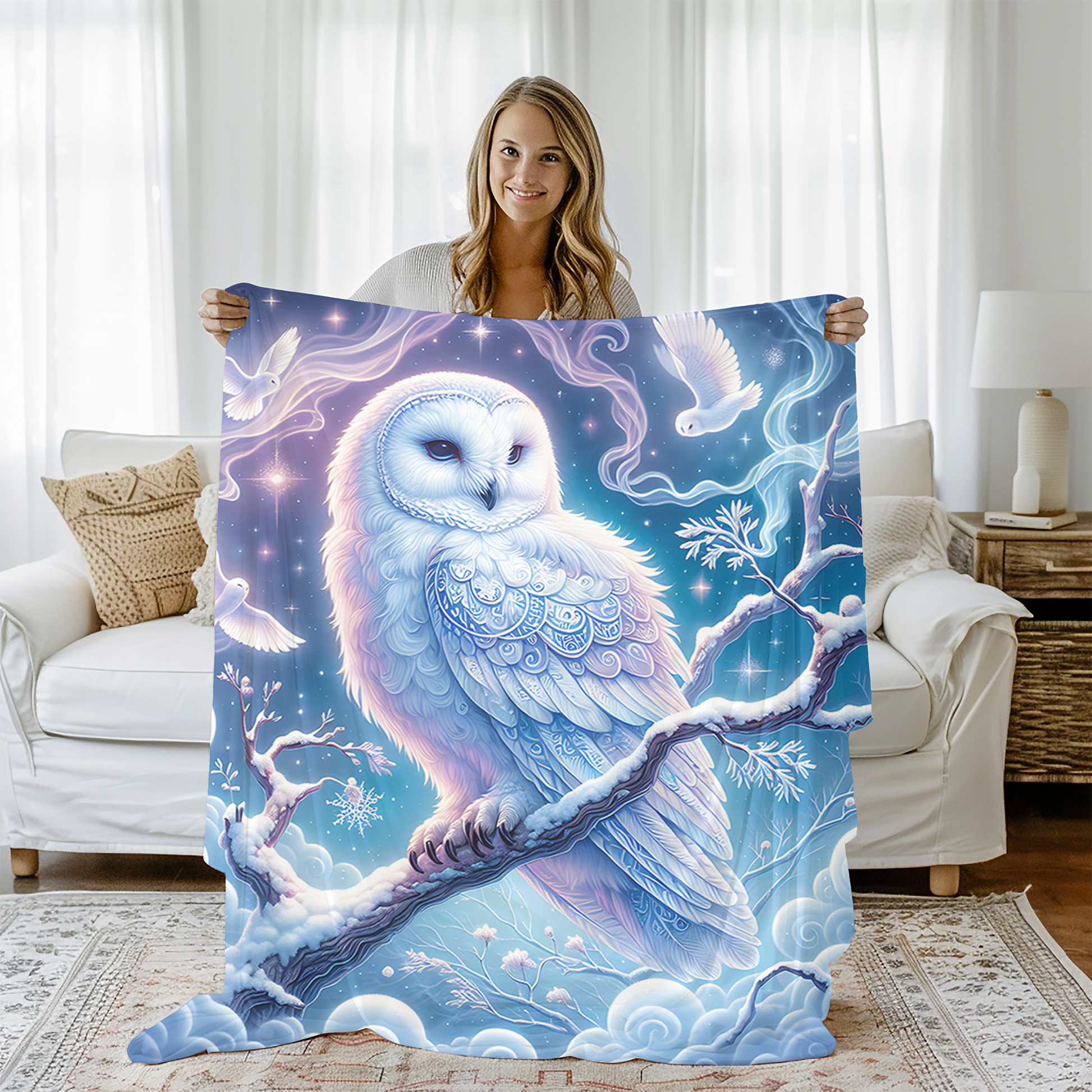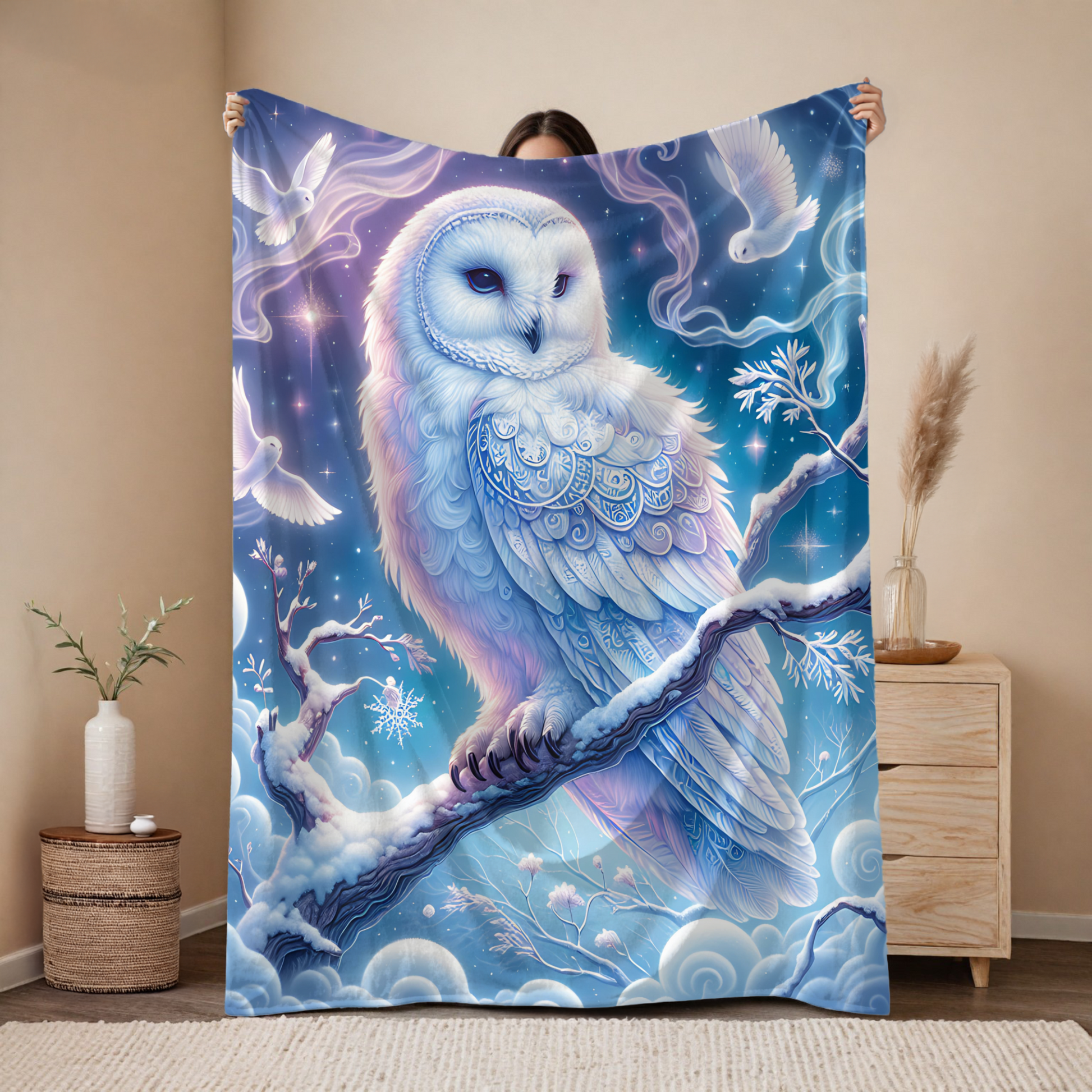 Mystical Owl Blanket – Celestial Guardian Velveteen Throw, Soft Starry Night Comfort