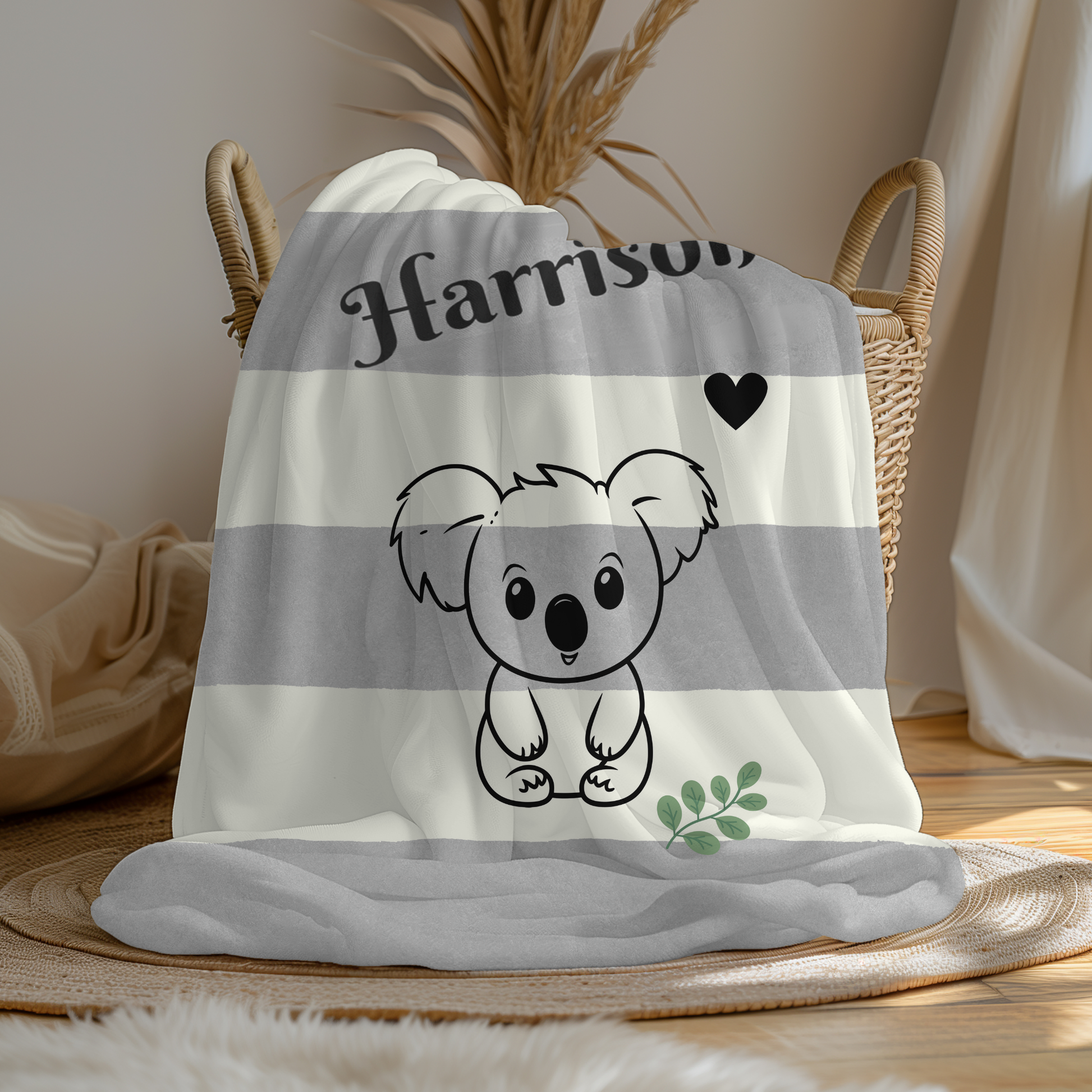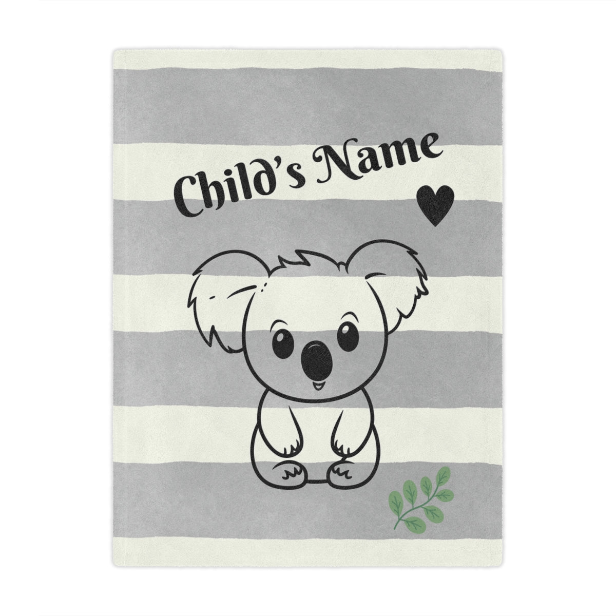 Personalized Koala Minky Baby Blanket – Custom Name Gift for Baby Boy or Girl, Soft Neutral Nursery Throw